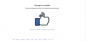 وعند محاولة كتابة عنوان الصفحة -التي تجاوز عدد معجبيها 2.6 مليون- تظهر رسالة تقول “عذرا هذه الصفحة غير متوفرة”.