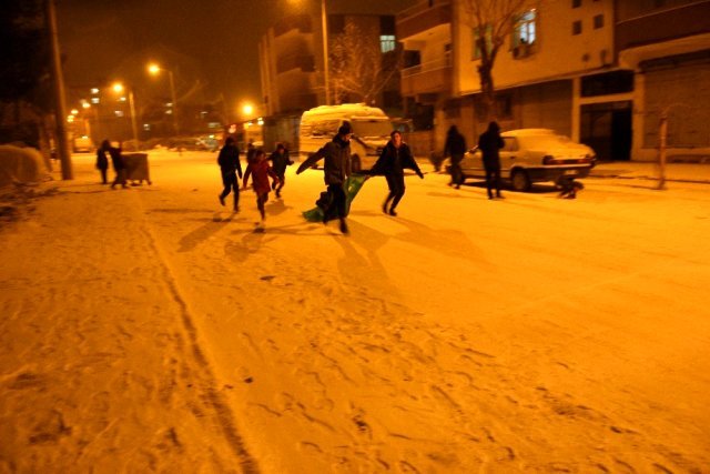 غمرت السعادة أهالي ولاية شانلي أورفا وبدأ الأطفال باللعب في الثلج وأخذ الصور التذكارية .