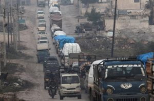 سوريون يفرون في ضربات الأسد المدفعية العشوائية من إدلب