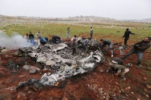 وسقطت الطائرة أثناء استهدافها للمدنيين العزل في ريف “حلب”، في منطقة “قبتان الجبل”.