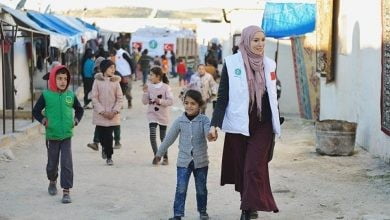 إدلب.. ممثلة تركية تساند المدنيين في مخيمات النزوح