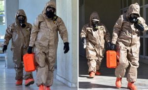 وتعامل الجهات الأمنية والعسكرية مع الحادثة بالفعل، وذلك بعد ارتدائهم للباس خاص بـ “الفيروسات الخطيرة” مثل “فيروس كورونا، والجمرة الخبيثة، وهناك العديد”.