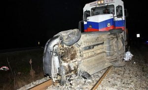 انقلبت مركبة اثر ارتطامها بعربة القطار على السكة الحديدية في جرمنجيك في أيدين غربي تركيا.