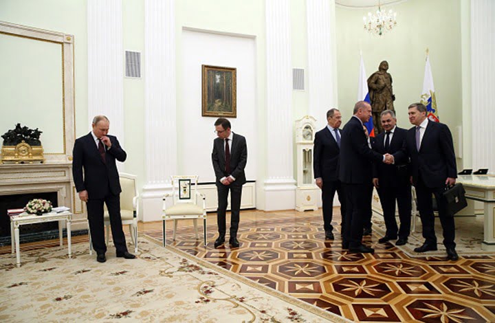 كما يمكن العثور عبر تصفح الإنترنت على صور عدة تظهر استقبال بوتين لزعماء وقادة من مختلف دول العالم، مثل رئيس السلطة الفلسطينية محمود عباس ورئيس الوزراء الإسرائيلي بنيامين نتنياهو، و”جون كيري” و”أنجيلا ميركل” و”بشار الأسد” وغيرهم ممن تطول بهم القائمة.