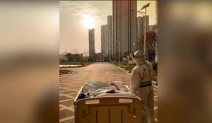 وروى الطبيب الذي يظهر في الصورة الدكتور ليو كاي، بعضا من التفاصيل، قائلا إن الصورة التقطت عندما كان ينقل، بمساعدة متطوع، مريضا بفيروس “كورونا” يعاني التهابا رئويا حاد، من أجل إجراء تصوير مقطعي له في مبنى آخر في المستشفى.