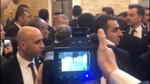 حيث فحص المصور الصحفيين والساسة الذين تجمعوا حول الرئيس التركي لدى وصوله إلى البرلمان، في اليوم الذي تأكدت فيه أول حالة إصابة بالفيروس في تركيا. وأبلغ أردوغان أعضاء حزب العدالة والتنمية الحاكم، في وقت لاحق، أن تركيا تتخذ الخطوات الملائمة لحماية كل مواطنيها. وقال: “لا يوجد فيروس أقوى من إجراءاتنا”.