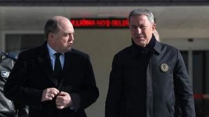 زار وزير الدفاع التركي خلوصي أكار، الجمعة، مع نظيره البريطاني بن والاس الشريط الحدودي بين تركيا وسوريا واطلاعا على أوضاع النازحين السوريين بالمنطقة.