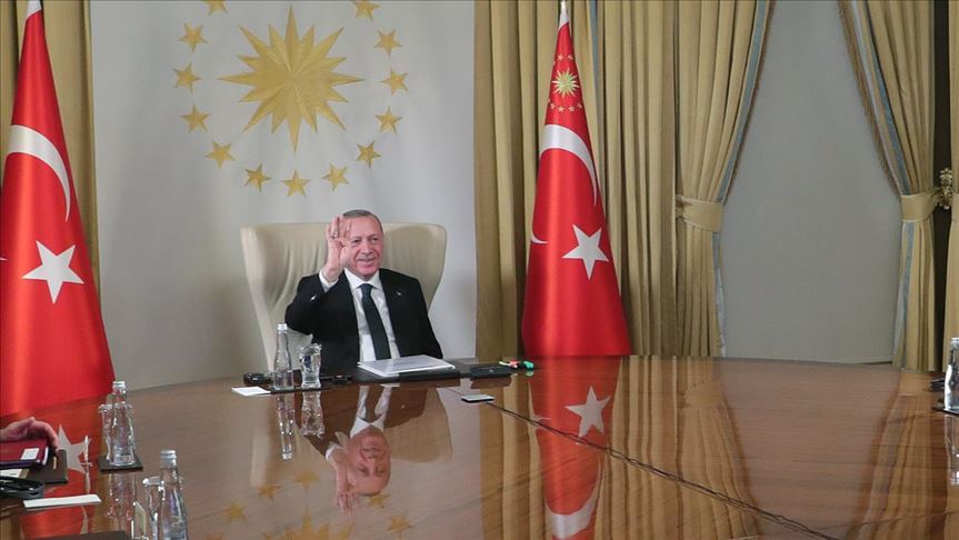 وانعقدت، الثلاثاء، قمة رباعية عبر دائرة تلفزيونية مغلقة، بين الزعماء الأربعة، شارك فيها أردوغان من مكان تواجده في قصر وحيد الدين بإسطنبول.
