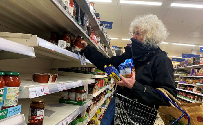 تداول رواد مواقع التواصل الاجتماعي مقطع فيديو لشخص قام بتخزين كميات هائلة من المواد الغذائية خوفا من نفادها في المحلات التجارية.