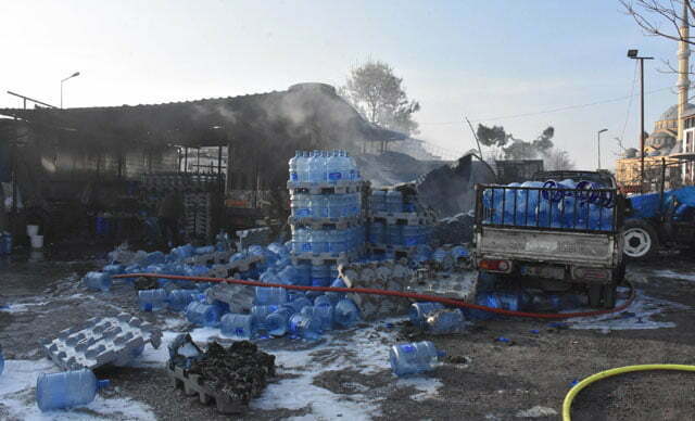 اندلع حريق في مستودع لخزانات المياه ما أدى لالتهام ثلاث شاحنات في محطة توقف المركبات القريبة في شارع بادم بحي كوجاسنان في بهتشالي إفلار باسطنبول.