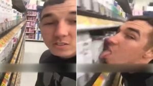 تداول رواد مواقع التواصل الاجتماعي فيديو لشاب أمريكي وهو يلعق الزجاجات الموجودة في أحد رفوف سوبر ماركت في ولاية ميزوري، متحديا بذلك قرارات الحجر الصحي المتخذ من قبل السلطات.
