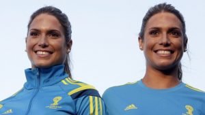 خطفت الشقيقتان البرازيليتان التوأم بياتريس وبرانكا فيريس، الفائزتان بالميدالية البرونزية للسباحة التزامنية “الإيقاعية” ضمن دورة الألعاب الأمريكية 2007، الأضواء في عالم عرض الأزياء.