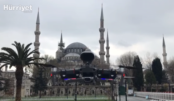 استخدمت الالشرطة التركية في اسطنبول طائرة بدون طيار لتحذير المارة من فيروس كورونا، كجزء من التدابير المشددة التي تم تطبيقها مؤخراً .