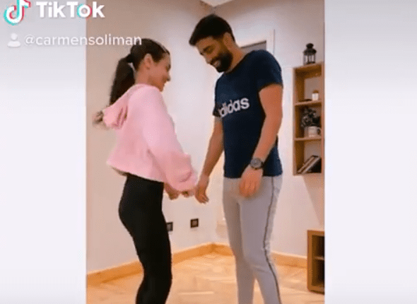حيث قامت كارمن سليمان بوضع رأسها نحو قدمي زوجها المُلحن المصري مصطفى جاد، ثم قلبت نفسها بحركة بهلوانية، انتهت بـ”حضن” رومانسي بينهما.