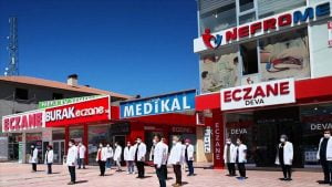 وقف العاملون في قطاع الصيدلة بتركيا، دقيقة صمت احتراما وتقديرا لزملائهم الذين فارقوا الحياة لإصابتهم بفيروس كورونا الجديد.