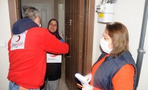 يقدم فرع الهلال الأحمر التركي في أدرنة الطعام الساخن والمساعدات الغذائية كل يوم للمحتاجين الذين لا يستطيعون مغادرة منازلهم بسبب تفشي الفيروس .