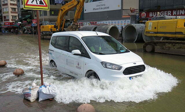 تحول طريق في كاديكوي باسطنبول إلى بحيرة من المياه بعد تسبب البلدية في تفجير خطوط المياه أثناء العمل، عن طريق الخطأ.