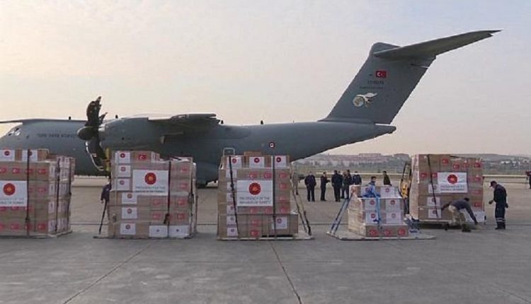 وتحمل طائرة الشحن التابعة للجيش التركي، أقنعة واقية للأطباء، وواقيات أوجه، وكمامات ” “N95، ولباس واقي للأطباء، ومواد طبية وقائية.