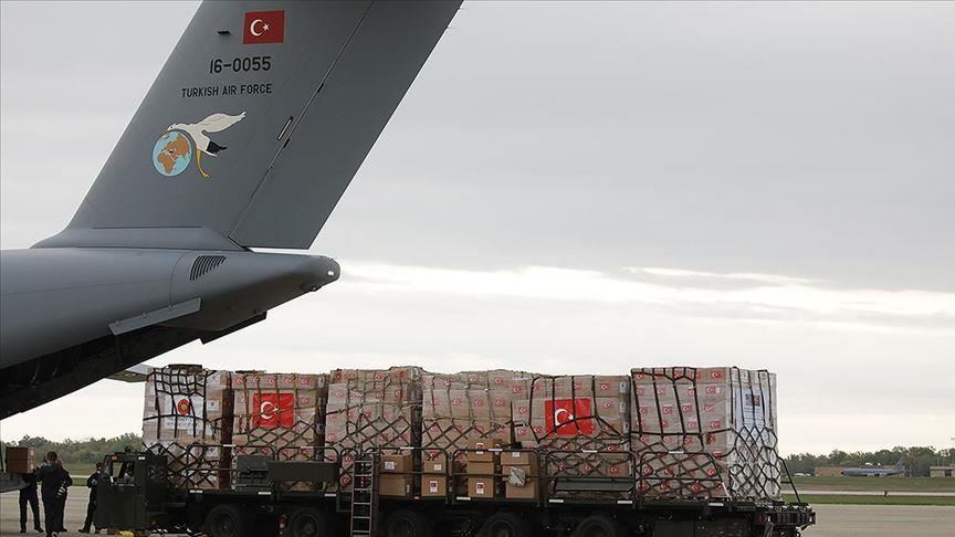 والثلاثاء، أرسلت تركيا بناء على توجيهات الرئيس رجب طيب أردوغان، طائرة محملة بالمساعدات الطبية إلى الولايات المتحدة، في إطار التضامن معها لمواجهة كورونا.