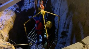 ونشر الدفاع المدني صورا تظهر لحظة انتشال الجثة من البئر.