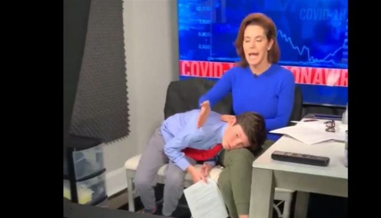 وتظهر المرأة العاملة في المقطع والبالغة من العمر 44 عاماً، تعتني بابنها ريس (11 عاماً) أثناء نومه في حضنها خلال تصوير فقرتها التلفزيونية.