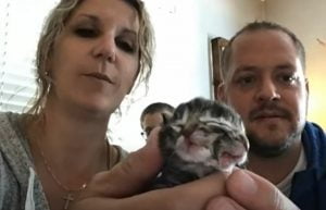 كينغ قالت إن القطة الأم رفضت هذا الهر، لذلك كانت هي تعتني به وتطعمه إلى أن يتسنى إجراء فحص بيطري كامل لتحديد ما إذا كان بصحة جيدة بما يكفي ليبقى على قيد الحياة.