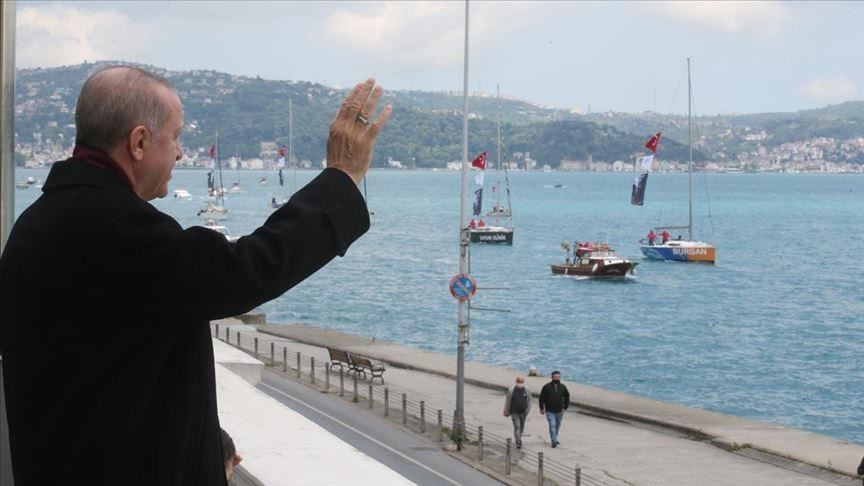 وخلال المراسم جاب 30 قاربا المضيق ضمن الفعالية، حيث حيّا الرئيس رجب طيب أردوغان من باحة قصر “هوبر” الرئاسي، القوارب المزينة بالرايات والأعلام التركية.