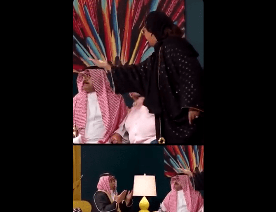 وظهرت هيا الشعيبي في المشهد وهي تُقنع عائلة فتاة بالقبول بتزويجها من عريس مُتقدم لها، وتقول: “عطوه، عطوه، خليه ياخذها وتعيش عنده، شوفوا وجهها كأنها المطربة رباب”.