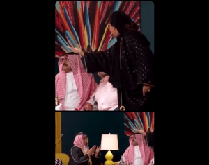 وظهرت هيا الشعيبي في المشهد وهي تُقنع عائلة فتاة بالقبول بتزويجها من عريس مُتقدم لها، وتقول: “عطوه، عطوه، خليه ياخذها وتعيش عنده، شوفوا وجهها كأنها المطربة رباب”.