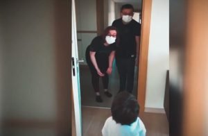 ويظهر في الفيديو، الطفل التركي من ولاية قيصري وسط تركيا وهو يحتضن والديه بعد أن انقطعا عنه مدة 70 يوما، بسبب إصابتهما بفيروس كورونا.