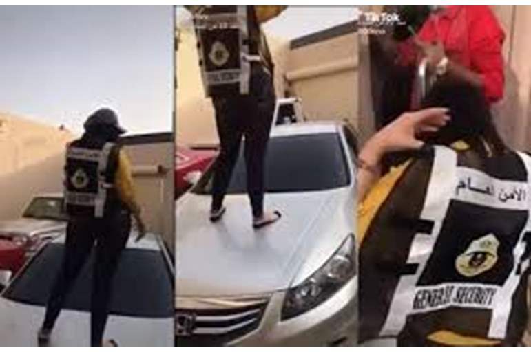 تداول رواد عبر مواقع التواصل الاجتماعي، مقطع فيديو لفتاة ترتدي زي الأمن العام التابع لوزارة الداخلية، وتقف على سيارة وتؤدي وصلة رقص على الأغاني.