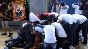 ووفقا لوكالة “رويترز”، شارك ما يقرب من 12 لاعبا في الفريق بحفل وداع زميلهم مارتينيز في ملعب لكرة القدم.