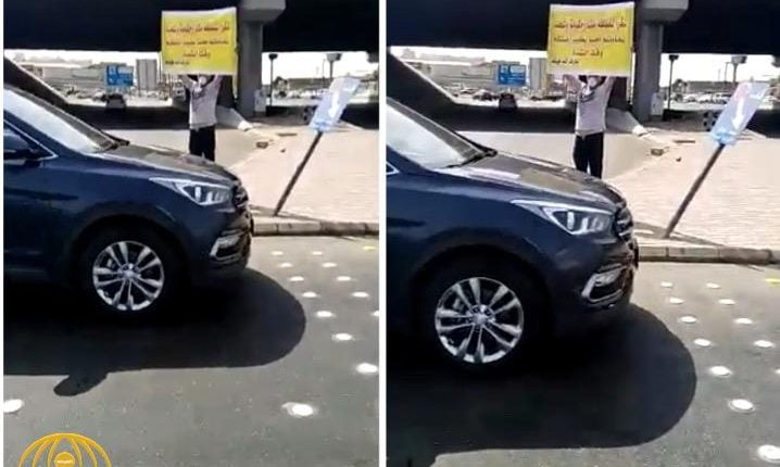 وثق مواطن سعودي مقطع فيديو لأحد المقيمين يقف في تحت أشعة الشمس ويرفع لوحة للعرفان بجميل المملكة السعودية الذي قدمته لهم وقت الشدة.