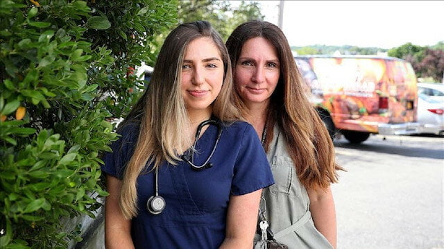 روت الممرضتان التركيتان ديلاك قومار، وابنتها بيلين يالينقيلينجار، كفاحهما ضد وباء كورونا، خلال فترة عملهما في مستشفى بمدينة نيويورك، أكثر المدن الأمريكية تضرراً بالفيروس.