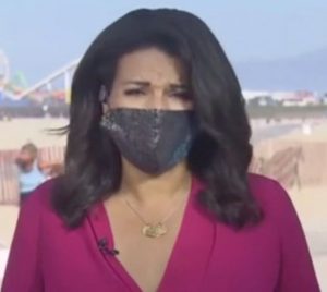 بينما كانت سارة سيدنر، مراسلة شبكة (CNN) تتحدث إلى المذيعة في الاستوديور بشأن ارتفاع حالات الإصابة بفيروس كورونا المستجد في الولايات المتحدة، تفاجأ المشاهدون بامرأة تخلع سروالها على أحد الشواطئ في لوس أنجلوس.