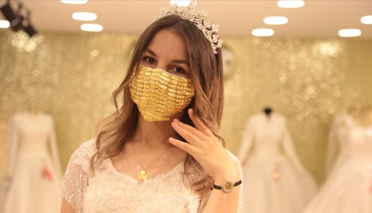 وتداولت وسائل الاعلام، وفق متابعة تركيا الان، أن صائفا تركيا يدعى حاجي مصطفى أوز قد انتج كمامة وزنها 30 غرامًا بقيمة 14 ألف ليرة تركية (الدولار=6,86 ليرة) ليكون جزءا من زينة العروس.