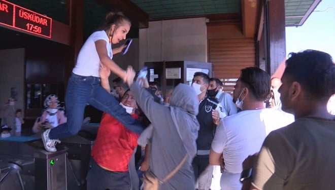 وصرخت الفتاة التركية بوجه المرأة الإيغورية أن عودي لبلدك ، ثم صعدت فوق بوابة الدخول إلى الميناء، ووجهت لها “لكمة طائرة” أسفرت عن إصابتها.