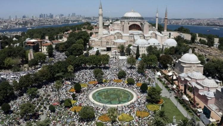 وفي 24 يوليو/ تموز الجاري، أقيمت أول صلاة جمعة بـ”آيا صوفيا” بحضور الرئيس رجب طيب أردوغان، بعد أن ألغت المحكمة الإدارية العليا التركية في 10 من الشهر المذكور، قرار مجلس الوزراء، الصادر في 24 نوفمبر/ تشرين الثاني 1934، بتحويله من مسجد إلى متحف.