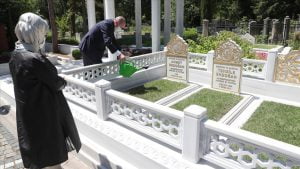 وقرأ أردوغان الفاتحة على روحي والدته تنزيلة، ووالده أحمد، ودعا الله لهما.