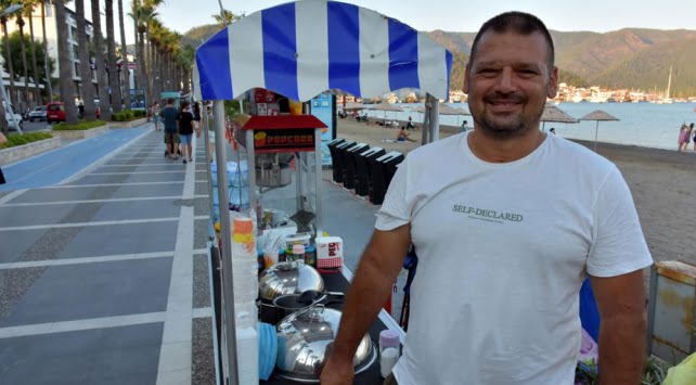 أضاف أوفيت: “بدأت بالعمل ببيع كاسات الذرة بمساعدة زوجتي على منضدة أمام شاطئ مارمريس العام بعد حصولي على التقاعد العجزي، وأداوم في الصباح وتداوم زوجتي في المساء، وأمضي يومي أمام منضدتي، ثم أعود لتناول دوائي وللراحة في المنزل، ثم أعود إلى منضدتي وأداوم فترة طويلة، وأبذل قصارى جهدي لأكسب رزقي، ولا آخذ مالا من المحتاجين القادمين إلى منضدتي، كما أكرم الأطفال بالحلوى لأرى الابتسامة على وجوههم وعلى وجه من لا يستطيع شراء الذرة لعدم امتلاكه المال، يكفيني أن يدعوا لي بالخير”.