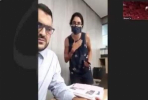 في المقابل، شوهد الأصيل وهو يجلس في حالة صدمة حيث تتحول الشاشة إلى اللون الأحمر قبل تحريك شاشته لتظهر امرأة ترتي كمامة الوجه، أيضًا في الغرفة معه.