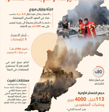 كارثة مرفأ بيروت.. ما تأثيرها؟ وكم بلغت الخسائر؟ (إنفوغراف)العالم آخر تحديث الخميس 06 أغسطس 2020 شارك انفجار بيروتلبنان شارك