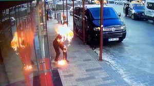 أقدم فتي تركي على سكب البنزين على شقيقه وإشعال النار في جسده بأحد شوارع منطقة تقسيم وسط مدينة إسطنبول .