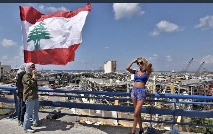 تداول ناشطون لبنانيون عبر مواقع التواصل الاجتماعي، صورة لفتاة “عديمة الإحساس” بحسب وصفهم، أثارت موجة غضب عارمة بسبب ما فعلته على أنقاض الدمار الذي خلفه انفجار مرفأ بيروت قبل أسبوع.