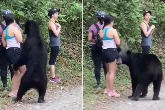 وأظهرت لقطات للحيوان البري – الذي يعرفه السكان المحليون باسم “الدب الودود” – وهو يقترب من المرأة ويستنشق شعرها، وهي تلتقط صورة سيلفي معه.