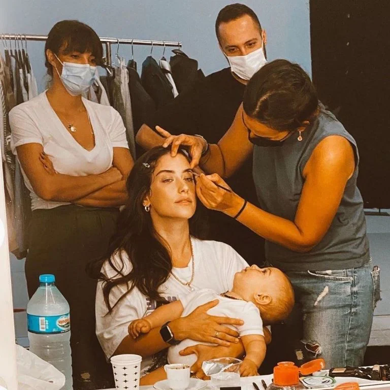 وظهرت النجمة التركية وهي تستعد لأحد المشاهد، من خلال وضع المكياج المناسب لها، بينما تحمل طفلها فكرت علي بين يديها في أثناء ذلك، لتلاقي هذه الصورة الكثير من التفاعل من رواد موقع تويتر تحديداً، إذ علق بعضهم عليها بإيجابية مطلقة، مشيرين إلى جمال نجمتهم وجمال اهتمامها بطفلها، في حين انتقد الكثير منهم تصرفها معتبرين أنه تصرفٌ لا مسؤول خصوصاً مع استمرار انتشار وباء كورونا، إذ كتبت إحداهن: “تصرف غير مسؤول بالمرة، فى ظل الوباء الموجود طفل صغير في موقع تصوير فيه كتييير من الناس حواليه”.