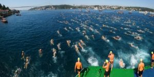 فقط بالسباحة مسافة 6.5 كيلومترات، من الضفة آسيا الآسيوية لمضيق البوسفور باتجاه الضفة الأخرى الأوروبية.