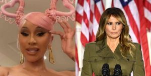 ولم تكتفي الفنانة الأمريكية كاردي بي بالهجوم والانتقاد الموجه لترامب، بل وصل بها الحال إلى تشويه صورة زوجته ميلانيا ترامب.