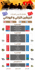 مقارنة بين قدرات الجيشين التركي واليوناني (إنفوغراف)