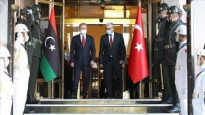 وافاد ان تركيا تقدم الدعم لحكومة الوفاق الشرعية لمحاربة مليشيات الانقلابي خليفة حفتر المدعوم من قبل السعودية، وفرنسا والسعودية، والامارات، ومصر.